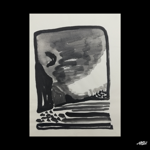 Peinture sur papier paysage noir et blanc unique - format A4 21x29cm