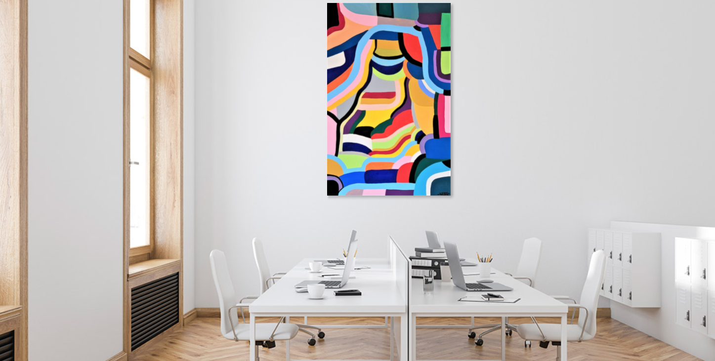 Offrez-vous cette peinture unique réalisé à la peinture Lefranc Bourgeois Flashe vinylique sur papier Canson. Les couleurs sont vives et éclatantes.