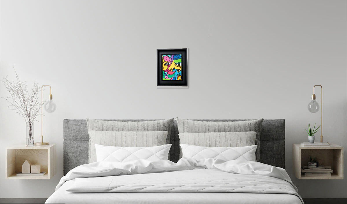Offrez-vous ce tableau unique réalisé au Posca sur un châssis en coton. Les couleurs sont vives et un vernis rend le tableau très brillant.